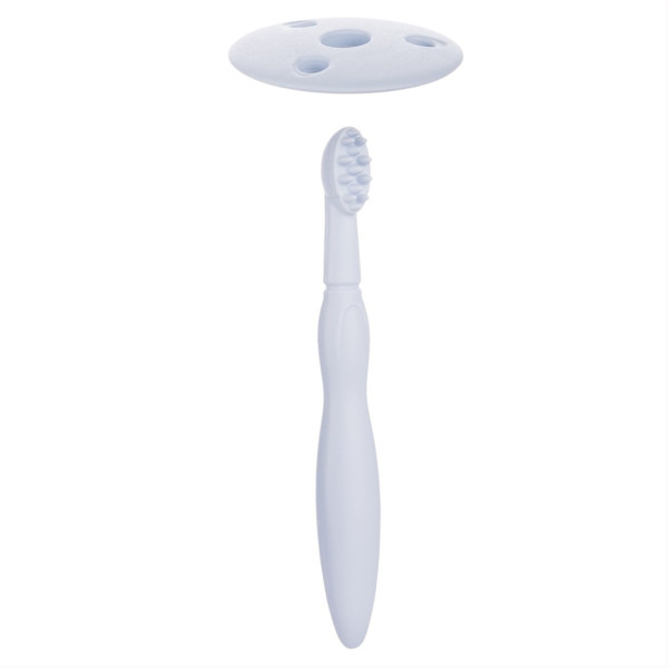 - Īpašs vairogs, kas aizsargā un neļauj jūsu mazulim iebāzt zobu birsti pārāk tālu mutē;