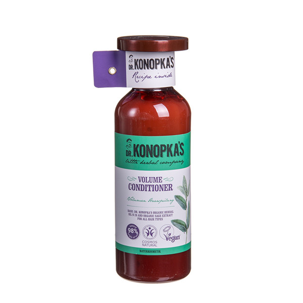 Dabīga sertificēta Dr. Konopka's līnija, kas nodrošina matu apjomu, bagātināta ar īpašu eļļu Nr. 28, sertificēta saskaņā ar BDIH COSMOS standartu un dabīgo salvijas ekstraktu, stiprina, baro un piešķir papildu apjomu.