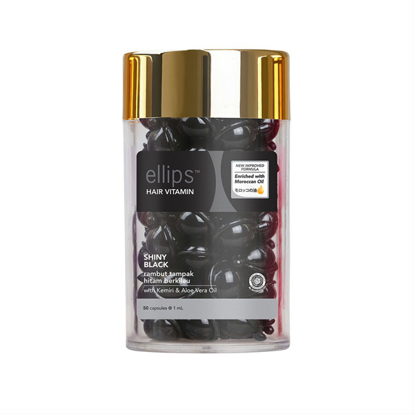 - Ellips Shiny Black matu vitamīni ar argana sēklu eļļu, alveju un Moluccana Aleurites Moluccana (Kukui) un A, C, E, B5 vitamīniem, kas paredzēti tumšo matu ikdienas kopšanai.