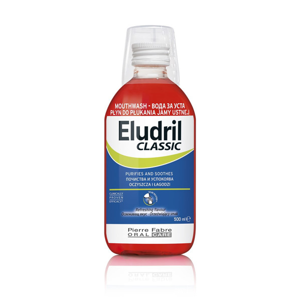 ELUDRIL Classic mutes skalošanas līdzekļa efektivitāti nodrošina divu aktīvo sastāvdaļu - hlorheksidīna un hlorbutanola - kombinācija. ELUDRIL unikālā formula palīdz sasniegt maksimālu iedarbību ar pietiekami zemu hlorheksidīna koncentrāciju. Tā novērš baktēriju aplikuma un zobakmens veidošanos un aizsargā smaganas. Mutes skalojamais līdzeklis tiek lietots kā papildu līdzeklis periodonta slimību ārstēšanai vai pēc zobu operācijām, implantiem vai citām mutes dobuma ķirurģiskām iejaukšanās operācijām.