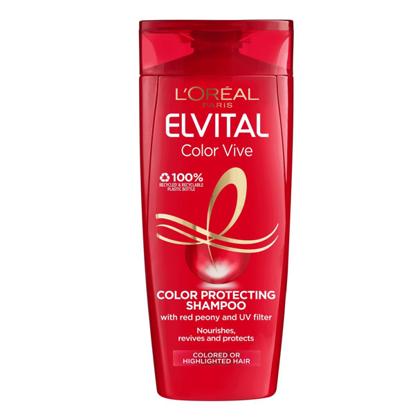Vai jūsu mati ir krāsoti vienā krāsā vai šķipsnās? Barojošais šampūns ar sarkanajām peonijām un UV filtriem baro, atsvaidzina un aizsargā krāsotus matus līdz pat 10 nedēļām*. Tas ir uzticama krāsas aizsardzība, pasargā matus no kaitīgās vides ietekmes un padara ilgāk noturīgu tūlīt pēc krāsošanas pamanāmo krāsas spilgtumu un intensīvo maigumu**. Jaunā pudele ir izgatavota no 100% pārstrādātas plastmasas*** un ir 100% pārstrādājama. (*Instrumentāls pētījums veikts, izmantojot Color Vive šampūnu un kondicionieri. **Patērētāju tests (204 sievietes), izmantojot Color Vive šampūnu un kondicionieri. ***Neieskaitot krāsu.