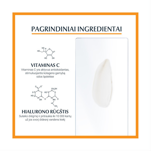 Gludāka, svaigāka un starojošāka āda jau pēc 7 dienām. C vitamīns ir spēcīgs antioksidants, kas neitralizē brīvos radikāļus un stiprina ādas aizsardzības sistēmu. Tas ir svarīgs arī kolagēna ražošanai ādas šūnās. Tas palīdz uzturēt ādas struktūru un palēnina novecošanās procesus. Inovatīvais seruma iepakojums nodrošina, ka C vitamīns ir svaigi aktivizēts pirms pirmās lietošanas reizes. Vienkārši viegli nospiediet dozatoru, sakratiet un sajauciet C vitamīna pulveri ar zemas molekulmasas hialuronskābes un likohalkona A serumu.