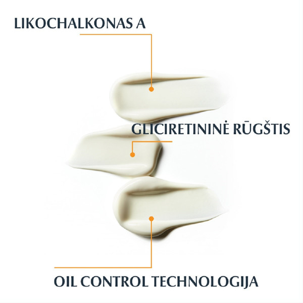 AR SPECIĀLO TEHNOLOĢIJU: ietver UVA/B filtrus ļoti augstai UV aizsardzībai (virs ES minimālajām prasībām) un likohalkonu A, kas neitralizē brīvos radikāļus. Gliciretīnskābe atbalsta ādas DNS atjaunošanas mehānismu. Turklāt eļļu regulējošā Oil Control tehnoloģija ar matējošām daļiņām sniedz ādai tūlītēju sausuma sajūtu.