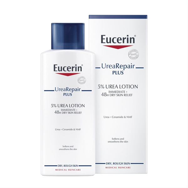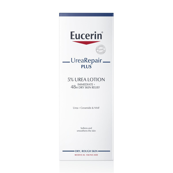 Eucerin® UreaRepair PLUS ķermeņa losjons ar 5% urīnvielas piedevu ir ikdienas līdzeklis ļoti sausai un raupjai ādai. Saule, vējš, karsti un auksti laikapstākļi, kā arī bieža mazgāšanās un dabīgais novecošanās process izraisa ādas mitruma zudumu. Eucerin® UreaRepair Plus ķermeņa losjons cīnās ar galvenajiem sausuma cēloņiem, palīdzot uzreiz samazināt sausas ādas diskomfortu. Ātri iesūcas un neatstāj lipīguma sajūtu. Piemērots diabēta slimniekiem. Āda kļūst patīkami gluda un elastīga. Satur urīnvielu, NMF (dabīgos mitrinošos faktorus) un keramīdus, kas mitrina ādu un stiprina ādas aizsargbarjeru. Bez smaržvielām. Klīniskajos izmēģinājumos apstiprināta efektivitāte un piemērotība sausai, nespodrai ādai.