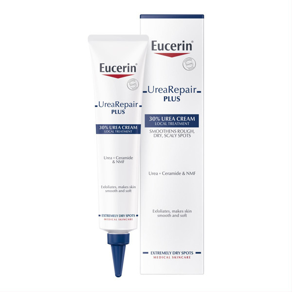 Eucerin UreaRepair PLUS krēms ar 30 % urīnvielas saturu mīkstina raupjas, sausas zonas.
