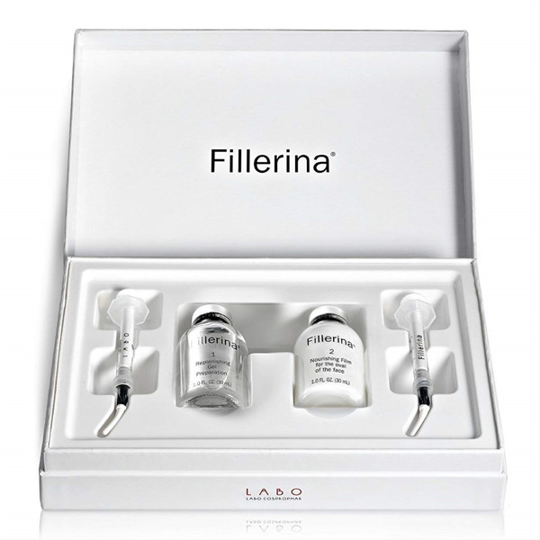 FILLERINA, Dermatoloģiskās kosmētikas pildvielu komplekts ar 6 hialuronskābēm, 2. līmenis, 2 x 30 ml