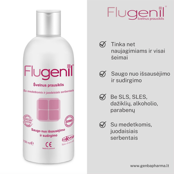 Flugenil® Gentle Cleanser ir medicīnisks līdzeklis, kas palīdz novērst vai samazināt apsārtumu, sausumu, niezi un mitruma zudumu.