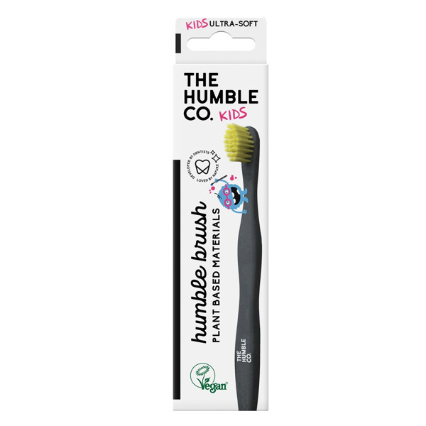 Humble Brush Kids ir augu izcelsmes zobu birste bērniem. Humble zobu birstes roktura pamatā ir kviešu ciete. Sari ir izgatavoti no neilona (neilona-6), kas nesatur BPA - cilvēka veselībai kaitīgu polikarbonāta sastāvdaļu maisījumu. Rūpīgi noņem aplikumu un masē smaganas, novērš baktēriju uzkrāšanos un nodrošina perfektu zobu tīrību.