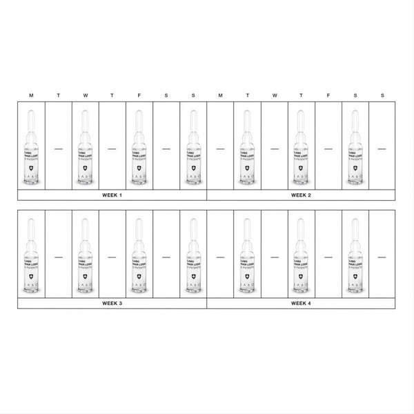 LIETOŠANA: "LABO HAIR LOSS 5 PATENTS" satur 3,5 ml preparāta vienā ampulā. Lietojiet katru otro dienu. Uzklājiet uz sausas galvas ādas vakarā. Neskalot.