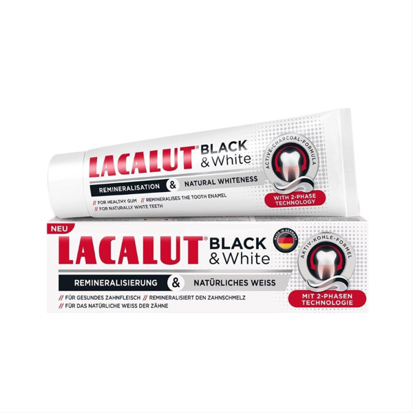 LACALUT BLACK & WHITE, zobu pasta, remineralizācija un dabīgs baltums, 75 ml