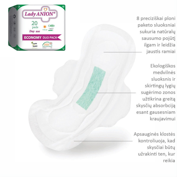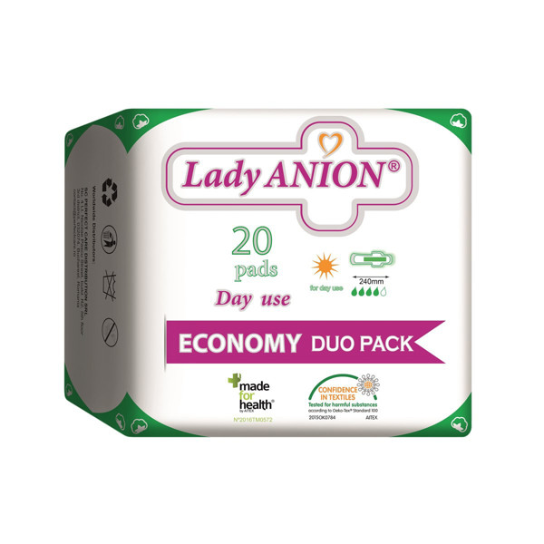 Lady ANION® имеет экологический сертификат Oeko-Tex® 100 №(2015OK0784). Он гарантирует, что пакеты и прокладки Lady ANION® соответствуют экологическим требованиям, предъявляемым к продукции, имеющей непосредственный контакт с кожей.