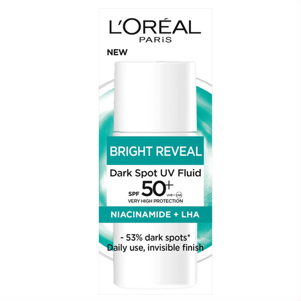 - Par produktuL'Oréal Paris tumšo plankumu UV fluīds ar SPF 50+ Bright Reveal aizsargā pret tumšajiem plankumiem un redzami samazina tumšo plankumu rašanos.