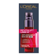 Pēc 40 gadu vecuma šūnu atjaunošanās ievērojami palēninās, kā rezultātā veidojas grumbas un problēmas ar ādas tvirtuma zuduma izraisītu sejas ovālu novīšanu. Revitalift Laser X3 Anti-Age serums atbilst šīm vajadzībām un veicina efektīvu ādas atjaunošanos. Produkta formula satur patentētu aktīvo sastāvdaļu, kas koriģē grumbas, padara ādu kuplāku un izlīdzina sejas kontūras - proksilānu 3 % koncentrācijā, kā arī šķelto hialuronskābi, kas ātri iekļūst ādā, lai to atjaunotu un izlīdzinātu grumbas.