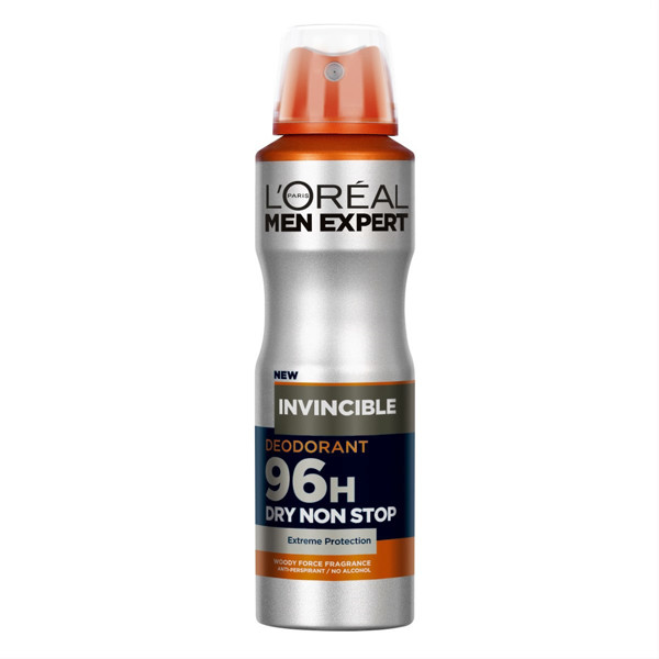 Aizsardzība, kas nekad nepārstāj darboties! L'Oréal Men Expert Invincible antiperspirants nodrošina, kā jūs to varētu nosaukt, ekstrēmu aizsardzību - līdz pat 96 stundām* - un spēcīgu koka aromātu.