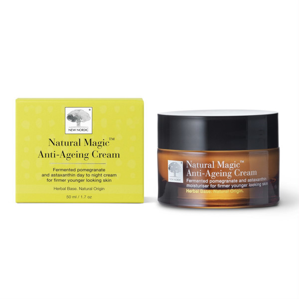 Natural Magic™ Anti-Ageing Cream ir atjaunojošs un intensīvi mitrinošs krēms. Tā sastāvā ir fermentēts granātābolu augļu ekstrakts un astaksantīns, kas padara ādu tvirtāku un jauneklīgāku. Mēs iesakām lietot šo krēmu kopā ar Skin Care™ kolagēna pildījumu tabletēm.Normālai un sausai ādai.