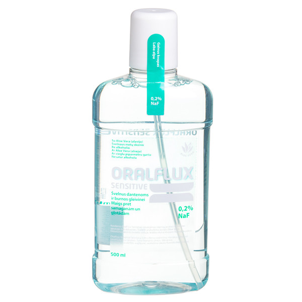 Содержит 0,2% NaF (эквивалентно 910 ppm F) и Алоэ Вера. Регулярное использование предотвращает кариес и обеспечивает свежее дыхание. OralFlux Sensitive следует использовать в качестве вспомогательного средства при чистке зубов фторсодержащей зубной пастой. Не содержит спирта и парабенов.