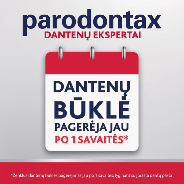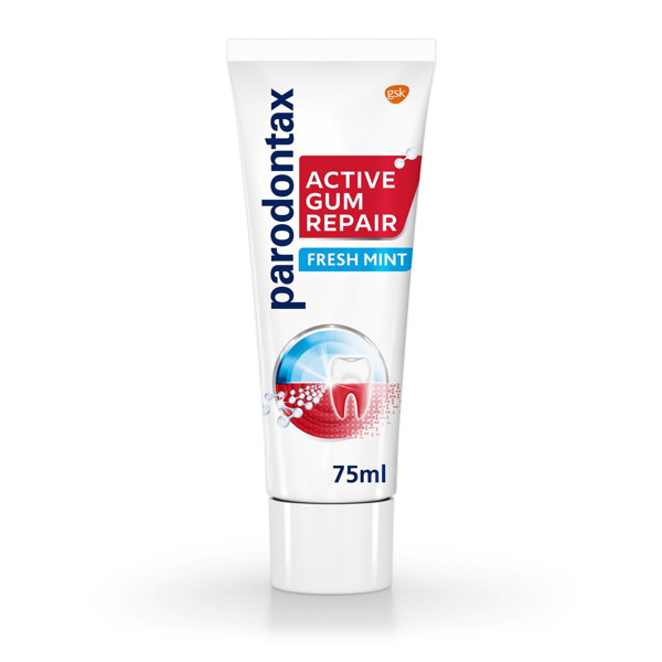 Parodontax Active Gum Repair zobu pasta palīdz novērst agrīnas smaganu problēmas, novēršot zobu aplikuma rašanās cēloni. Šī zobu pasta noņem aplikumu un baktērijas, tādējādi stimulējot smaganu pašatjaunošanās procesu un palīdzot saglabāt stipru saikni ar zobiem. Fluorīda zobu pasta. Zobus tīriet 2 reizes dienā, centieties zobu pastu neuzņemt un izspļaut tās pārpalikumu.