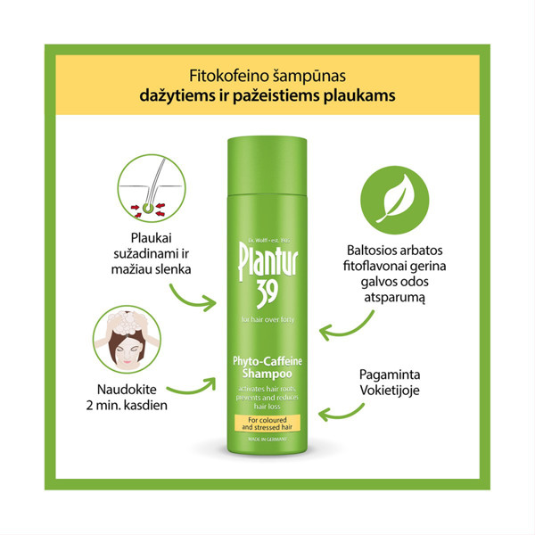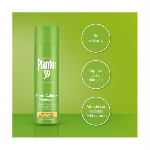 PLANTUR 39 шампунь для окрашенных и поврежденных волос с кофеином против выпадения волос, 250 мл