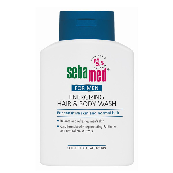 SEBAMED MEN šampūns un ķermeņa mazgāšanas līdzeklis. Steidzīgiem vīriešiem ir nepieciešami kvalitatīvi un efektīvi produkti ādai un matiem. "Sebamed ķermeņa mazgāšanas līdzeklis ir paredzēts steidzīgiem vīriešiem, kuri novērtē kvalitatīvu mazgāšanās rituālu. Šis produkts bez ziepēm apvieno labākās mazgāšanas līdzekļa un šampūna īpašības, lai aizsargātu un mitrinātu ādu un matus. Mazgāšanas līdzekļa PH 5,5 palīdz uzturēt ādas dabisko skābju līdzsvaru un aizsargā pret kaitīgo vides ietekmi. Maigas attīrošās vielas attīra, atjauno un mitrina ādu un matus. Mentols atsvaidzina un piešķir enerģiju, pantenols mitrina un aizsargā ādu no sausuma. Īpašas aktīvās sastāvdaļas stiprina matu struktūru un padara tos viegli ķemmējamus. Vieglais vīrišķīgais aromāts sniegs Jums labu garastāvokli un pašpārliecinātību. Vīriešu attīrošais līdzeklis palīdzēs novērst ādas kairinājumu, stiepšanu un niezi.
