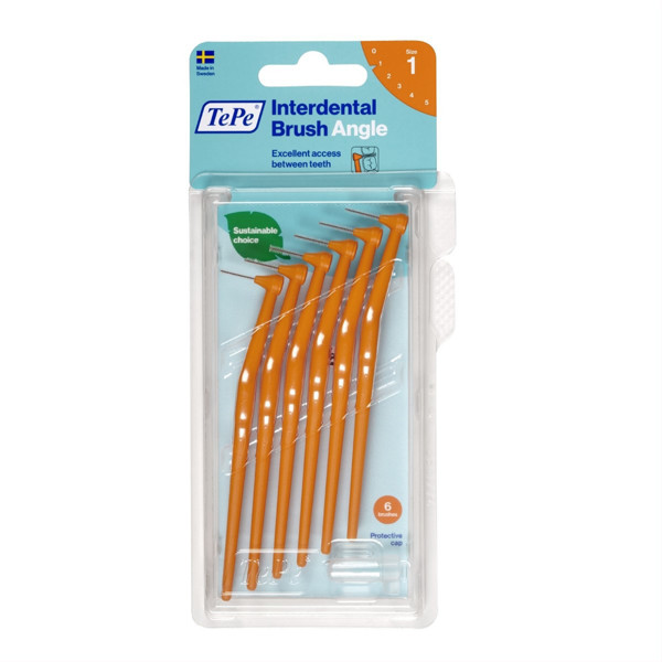 Lietojiet pareizā izmēra birstīti ar sariņiem, kas aizpilda starpzobu dobumus, un nekad nespiežiet sariņus šajās vietās. Pārāk liels spēks un pastāvīga saliekšana var izraisīt stieples plaisāšanu, kas var izraisīt traumas. TePe Angle starpzobu birstes ir pieejamas 6 izmēros, un tām ir ar plastmasu pārklāta stieple. Izstrādātas sadarbībā ar zviedru stomatologiem. Uzglabāt bērniem nepieejamā vietā.Ražotājs: