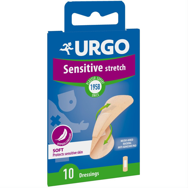URGO SENSITIVE STETCH ANTISEPTICS, elastīgs plāksteris, 2,0 x 7,2 cm, 10 gab.