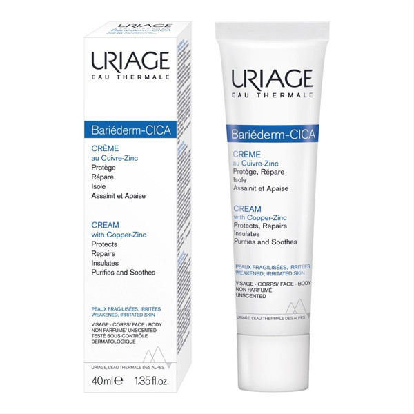Krēms ar Cu (varu) un Zn (cinku) ir paredzēts, lai atjaunotu normālu ādas stāvokli, kas ir bojāta dažādu faktoru ietekmē (plankumi, saules apdegumi, autiņbiksīšu izsitumi, dermatoloģiskas procedūras...). Patentētie Poly-2P un GF atjaunojošie kompleksi, Uriage termālā ūdens un Cu glikonāta+Zn oksīda sinerģiskā iedarbība mitrina ādu, var pasargāt to no kairinājuma, stimulēt ādas reģenerāciju un aizsargbarjeras atjaunošanos. Bez smaržas, krēmveida tekstūra, nav taukaina, nav lipīga, ātri iesūcas ādā. Zīdaiņiem, bērniem, pieaugušajiem.