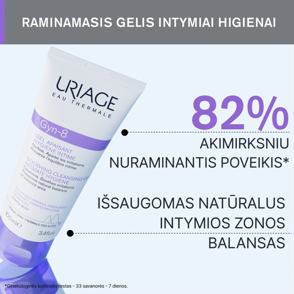 GYN-8 nomierinošs mazgāšanas gels intīmai higiēnai ir paredzēts lietošanai, ja intīmās zonas gļotāda ir iekaisusi, vai kombinācijā ar ginekoloģisko pretsēnīšu terapiju. Termālais ūdens nomierina un mitrina intīmās zonas ādu, un Glyco-Gyn komplekss (patentēta formula) neizžāvē ādu.