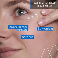 Sausai ādai, jutīgai ādai ap acīm. Intensīvi baro, nomierina un mitrina ādu ap acīm, mazina sasprindzinājumu un diskomfortu, palīdz atjaunot ādas aizsargbarjeru, vienlaikus aizsargājot to no kaitīgiem ārējiem faktoriem. Nelipīga tekstūra, ātri iesūcas.