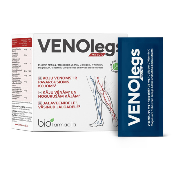 Комплекс с высоким содержанием флавоноидов (диосмин - 750 мг и гесперидин - 75 мг), минералов, витаминов, коллагена и 3 растительных экстрактов для уставших ног, для укрепления вен ног и нормальной венозной микроциркуляции.