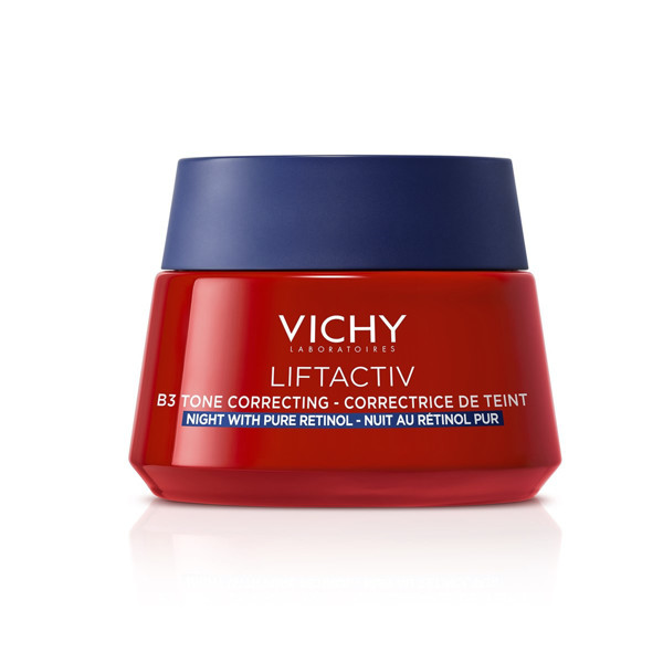 LIFTACTIV B3 Krēms pret tumšajiem plankumiem nakts krēms ar zaļo retinolu. Pirmo reizi Vichy ir apvienojis divas aktīvās sastāvdaļas nomierinošā nakts krēmā: niacinamīdu (vitamīnu B3) un 0,15% tīru retinolu, kam piemīt šūnu atjaunošanas īpašības. Pēc 1 nedēļas āda kļūst gludāka(1). Pēc 2 mēnešiem tumšo plankumu skaits ir samazinājies, pat visizturīgākie plankumi.