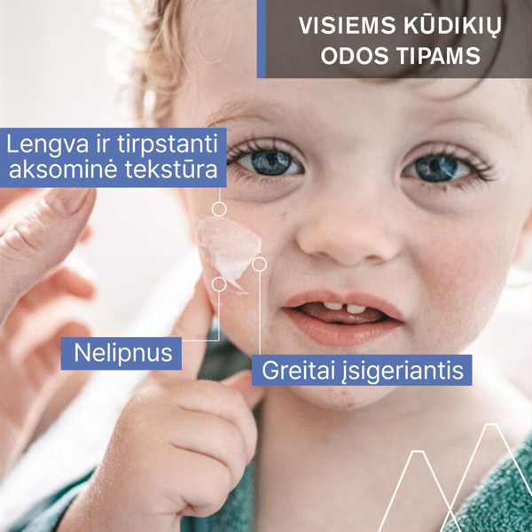 Lietošana: uzklāt uz tīras ādas un viegli iemasēt, līdz krēms iesūcas ādā. Nelietot uz bērna acīm.